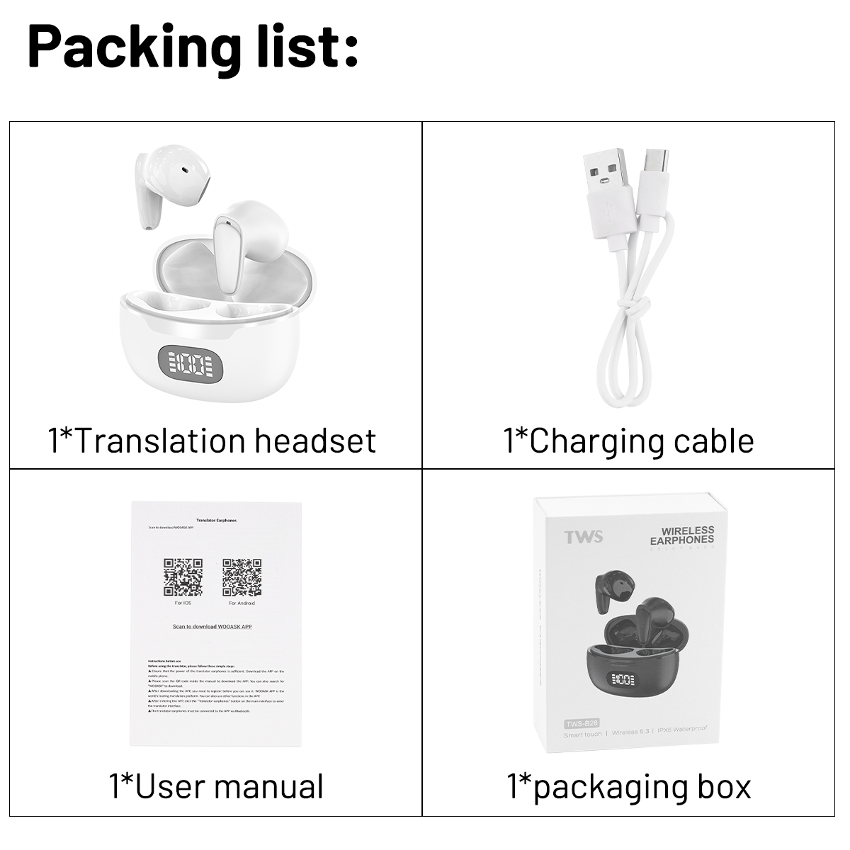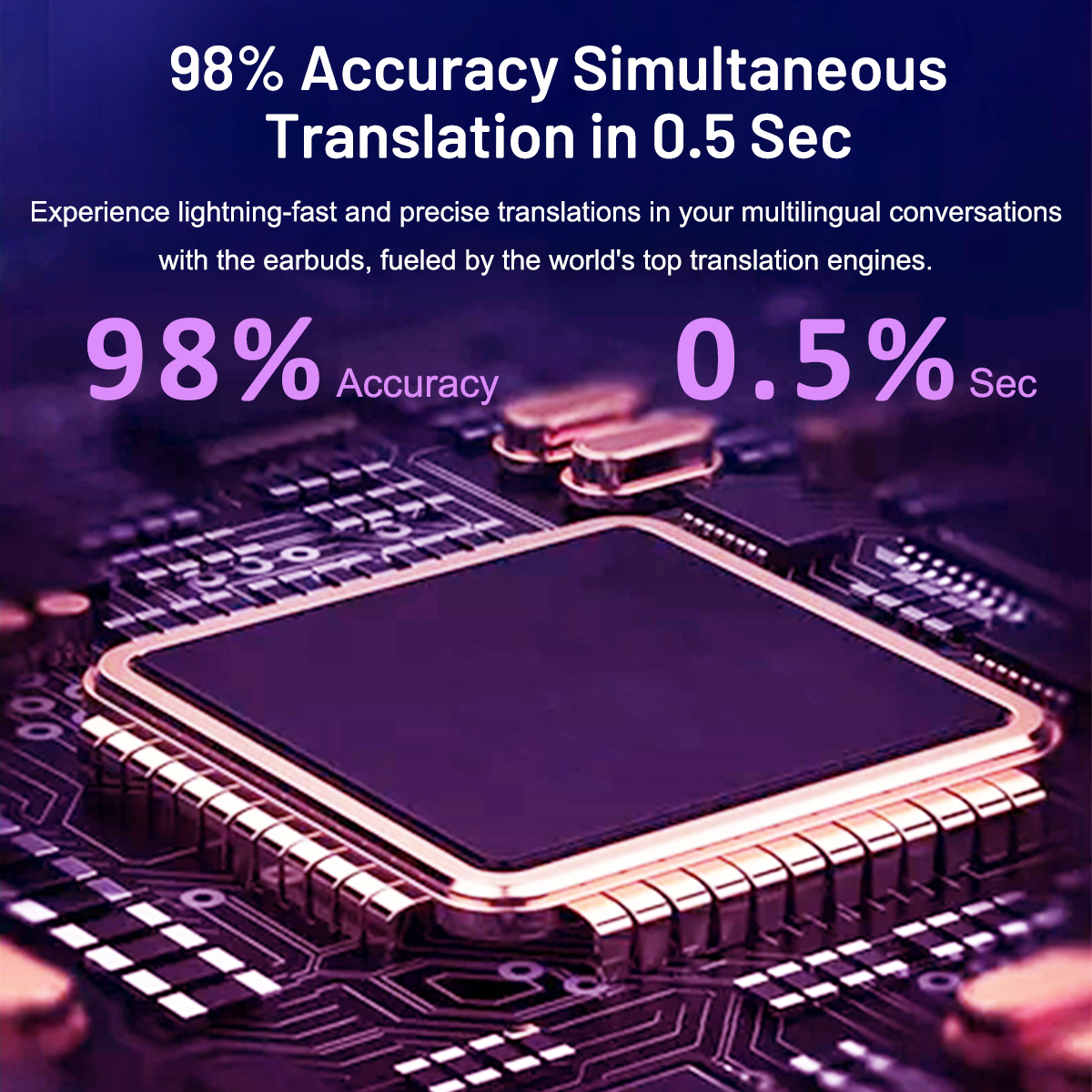 Intelligent voice translation headset 144 languages 0.5 seconds real-time translation 98% accuracy wireless bluetooth translation device